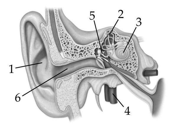 Выберите три верно обозначенные подписи к рисунку «Строение органа слуха».