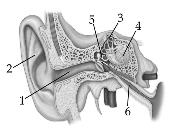 Выберите три верно обозначенные подписи к рисунку «Строение органа слуха».