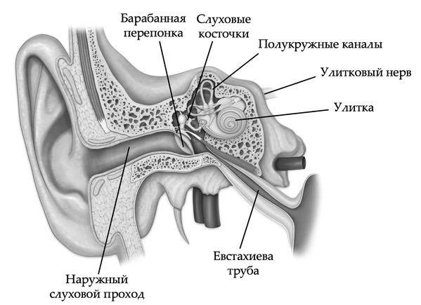 3) восприятие звуков происходит в рецепторах улитки, там они превращаются в нервные импульсы. Нервные импульсы по слуховому нерву передаются в височную долю КБП.
