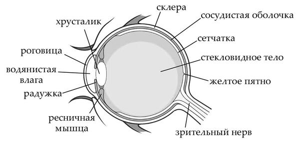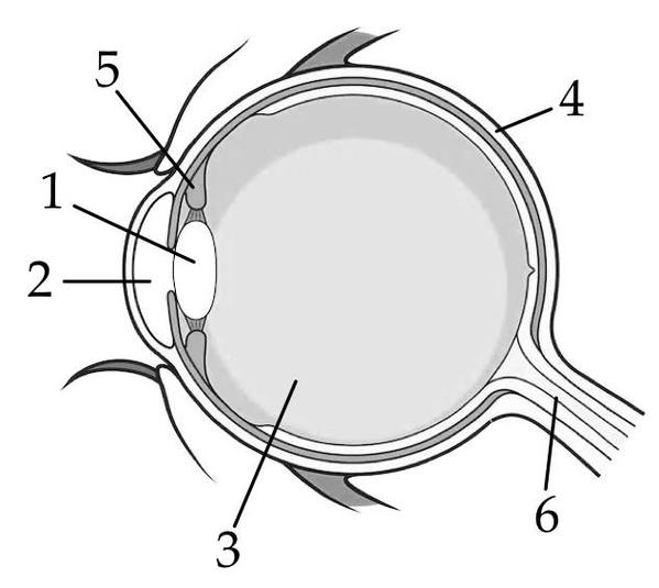 1) 1 — хрусталик, преломляет лучи солнечного света, обеспечивает фокусирование изображения на сетчатке;