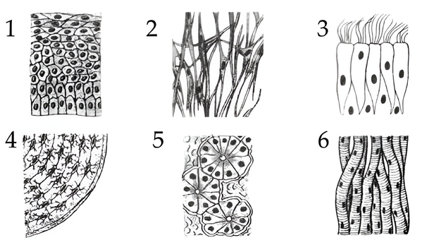 Укажите верно обозначенный вид тканей организма человека.