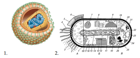 | Б) генетический аппарат представлен молекулами ДНК или РНК | 2) 2 |