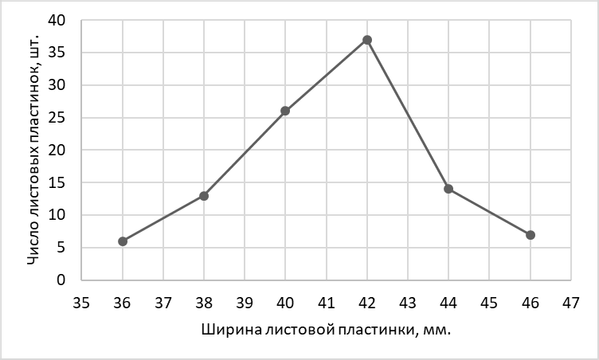 2) Максимальное число листовых пластинок наблюдается при их ширине 42 мм.