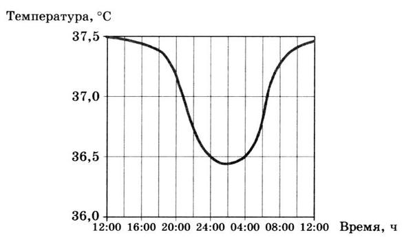 Проанализируйте график «Физиологические колебания температуры тела в течение дня».