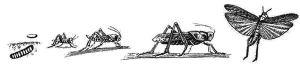 На рисунке изображен кузнечик, он относится к отряду Прямокрылые. Для Прямокрылых характерно непрямое развитие с неполным превращением;