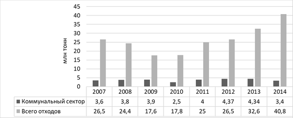 5) В течение 7 лет отходы коммунального сектора в Москве остаются приблизительно на одном уровне.