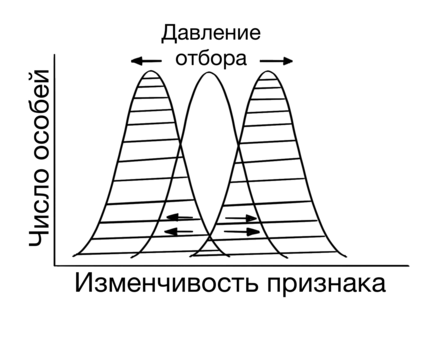 Дизруптивный отбор — это одна из форм естественного отбора, при которой выживают и дают потомство особи с крайними проявлениями признака, в то время как особи со средними значениями этого признака исчезают.