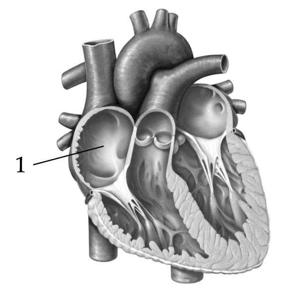 Назовите камеру сердца человека, которая обозначена цифрой 1. Какая кровь содержится в этой камере и по каким сосудам она в нее поступает?