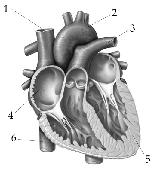 Какой цифрой на рисунке обозначена часть сердца, по которой кровь притекает от нижней части тела?