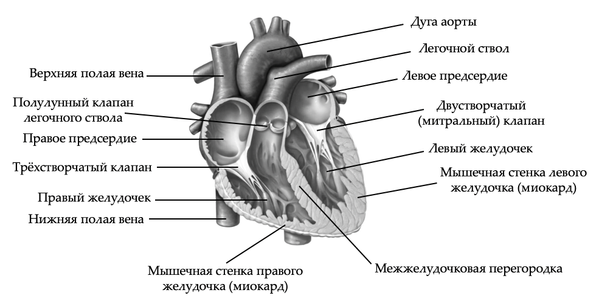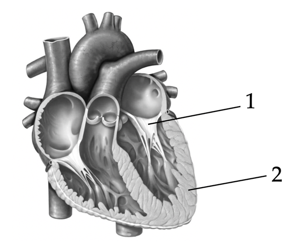 Назовите структуры сердца, обозначенные на рисунке цифрами 1, 2. Объясните их функции.