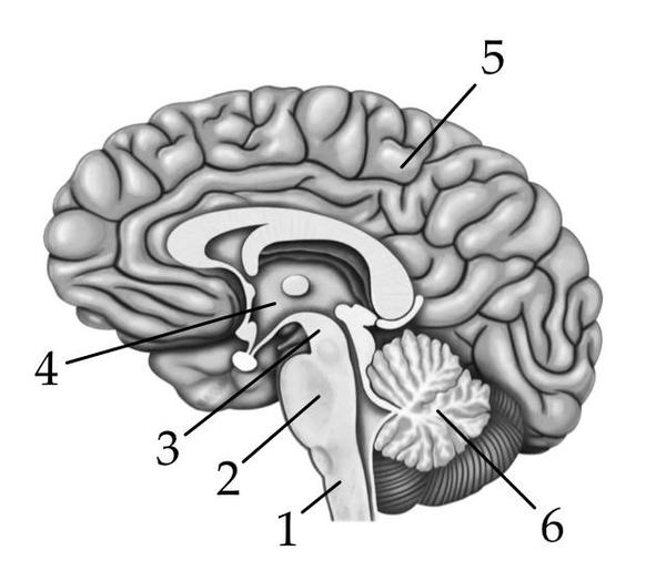 Выберите три верно обозначенные подписи к рисунку «Отделы головного мозга».