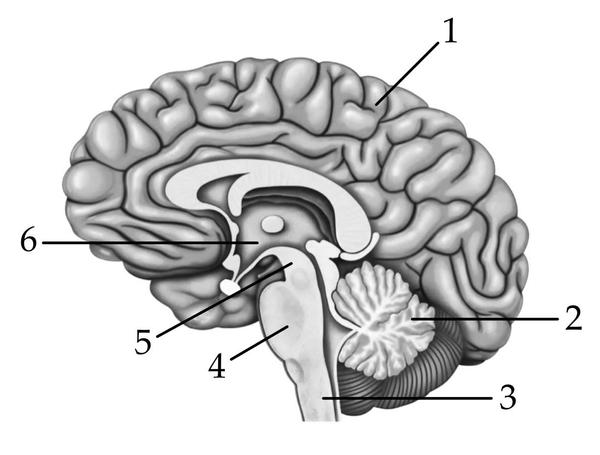 6 — промежуточный мозг;