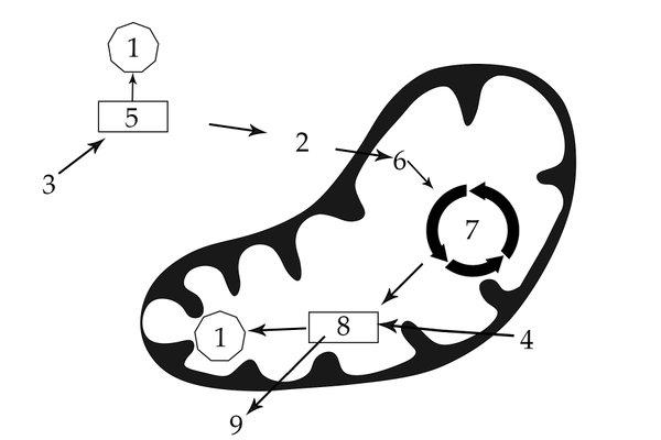 Укажите номер, обозначающий на схеме этап, на котором происходит выделение наибольшего количества АТФ.