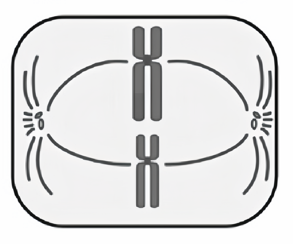 На схеме изображена метафаза мейоза II, так как хромосомы выстроены на экваторе клетки в одну линию; имеют по две хроматиды, но представлены одной парой (нет гомологичной пары).
