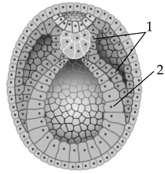 Установите соответствие между структурами и зародышевыми листками, обозначенными цифрами 1 и 2: к каждой позиции, данной в первом столбце, подберите соответствующую позицию из второго столбца.
