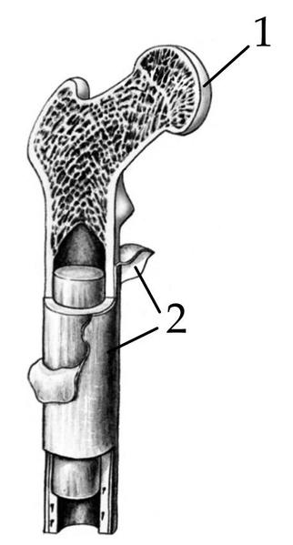 1) 1 — головка, 2 — надкостница;