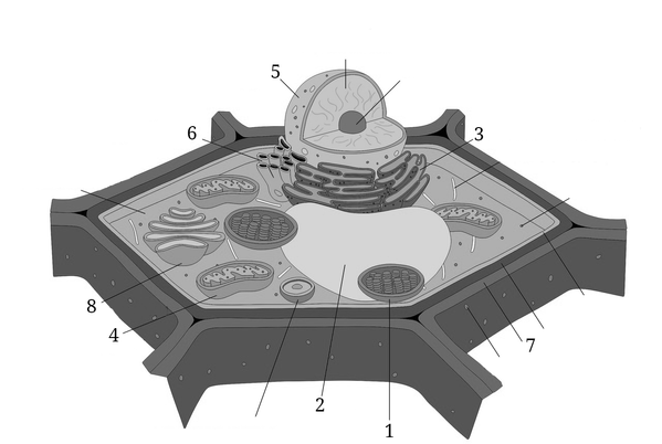 Каким номером на схеме обозначена структура клетки, состоящая в основном из целлюлозы?