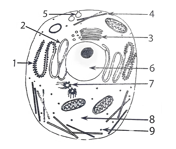 Установите соответствие между характеристиками и структурами клетки, обозначенными на рисунке цифрами 1, 2, 3: к каждой позиции, данной в первом столбце, подберите соответствующую позицию из второго столбца.