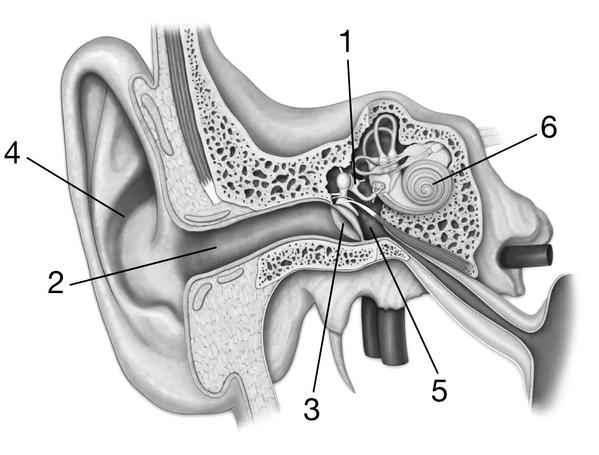 Выберите три верно обозначенные подписи к рисунку, на котором изображено строение органа слуха человека. Запишите в таблицу цифры, под которыми они указаны.