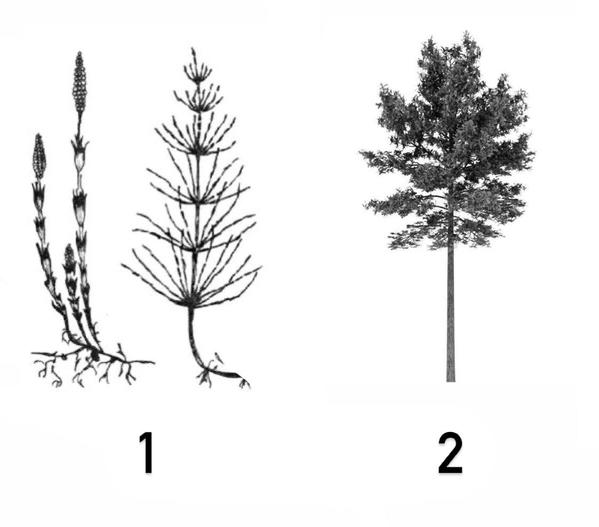 2) здесь изображена сосна (голосеменное растение). Голосеменные образуют семена, жизненная форма представлена деревом и размножение не зависит от воды.