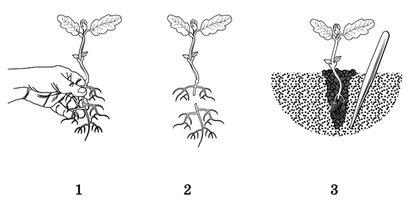 Рассмотрите рисунки 1-3, на которых изображены некоторые этапы пересадки молодого растения. Как называют агротехнический приём, изображённый на рисунках 1 и 2? С какой целью он используется?