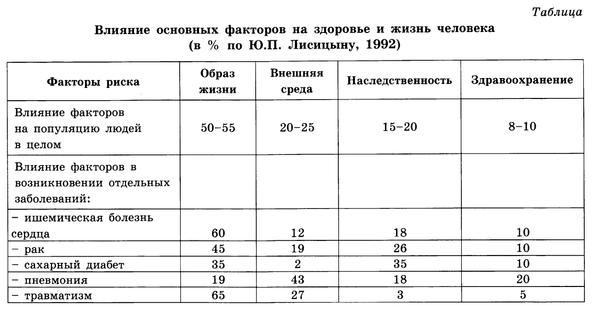 Пользуясь таблицей «Влияние основных факторов на здоровье и жизнь человека», а также используя знания из курса биологии, ответьте на следующие вопросы.