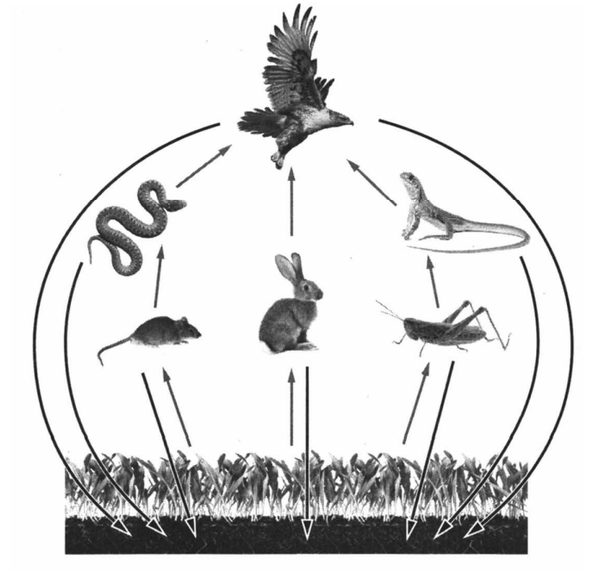 Рассмотрите схему пищевой сети. Какую роль в ней играет кузнечик?