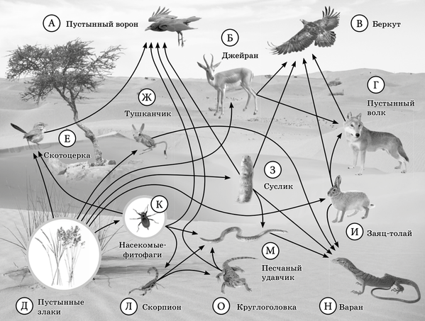 Изучите фрагмент экосистемы пустыни, представленный на рисунке, и выполните задания 19-21.