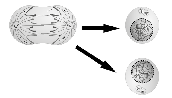 На изображении показана анафаза митоза, определяющая способность клеток воспроизводить себе подобных (самовоспроизведение)