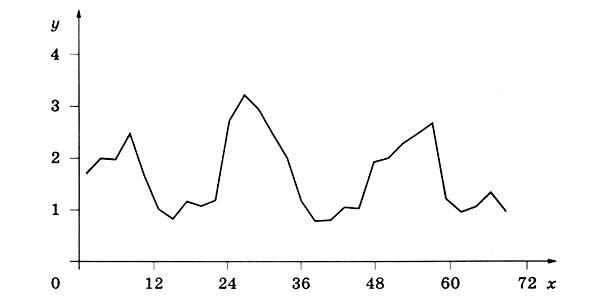 Изучите график, отражающий зависимость скорости движения мальков рыбок от времени (по оси х отложено время (ч), а по оси y – скорость движения (мм/с)).
