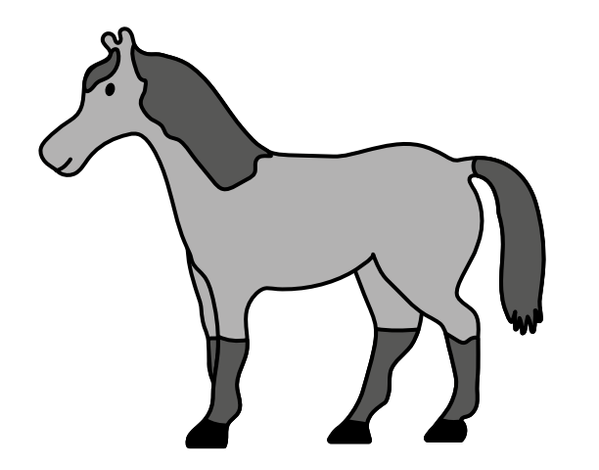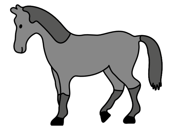 Рассмотрите фотографию серой с мелкими белыми пятнами лошади. Выберите характеристики, соответствующие её внешнему виду, по следующему плану: окрас (масть), постановка головы, форма головы, постановка задних конечностей. При выполнении работы используйте линейку и карандаш.