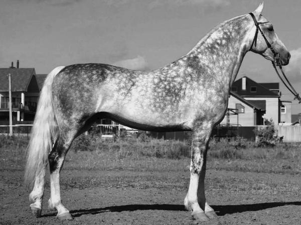 1) масть «в яблоках» (с мелкими светлыми пятнами);