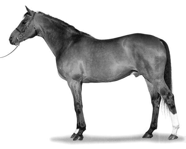 Так как у коня шея, хвост и ноги темнее, чем остальное тело, он относится к гнедой масти. Голова по размерам меньше шеи, значит шея — длинная прямая. Голова — длинная прямая. Постановку определяем по ноге, расположенной дальше от корпуса, то есть по левой — прямая отставленная. Породе «вятская» лошадь не соответствует по всем параметрам.