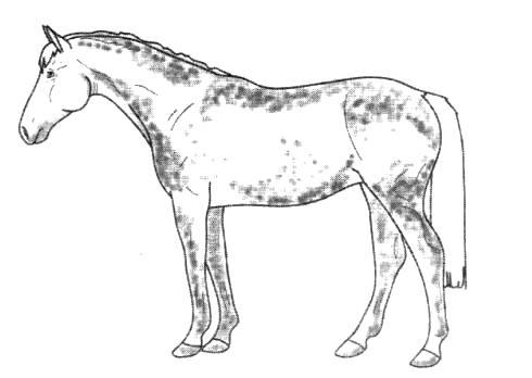 Изображенная на рисунке лошадь имеет следующие признаки: