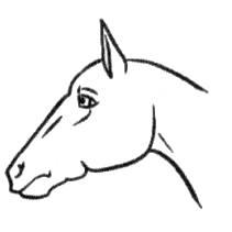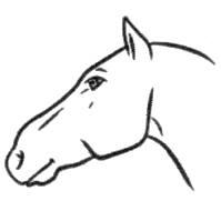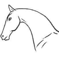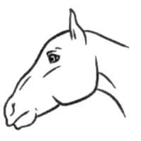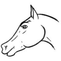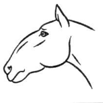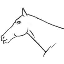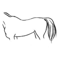 Рассмотрите изображение лошади. Выберите характеристики, соответствующие её внешнему строению, по следующему плану: постановка головы, форма головы, форма спины, постановка задних конечностей.