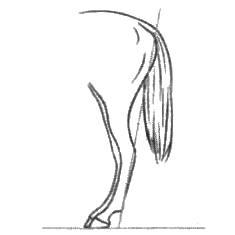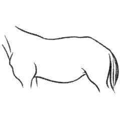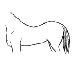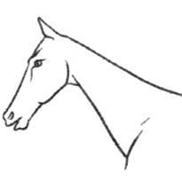 Рассмотрите изображение лошади. Выберите характеристики, соответствующие её внешнему строению, по следующему плану: постановка головы, форма головы, форма спины, постановка задних конечностей.